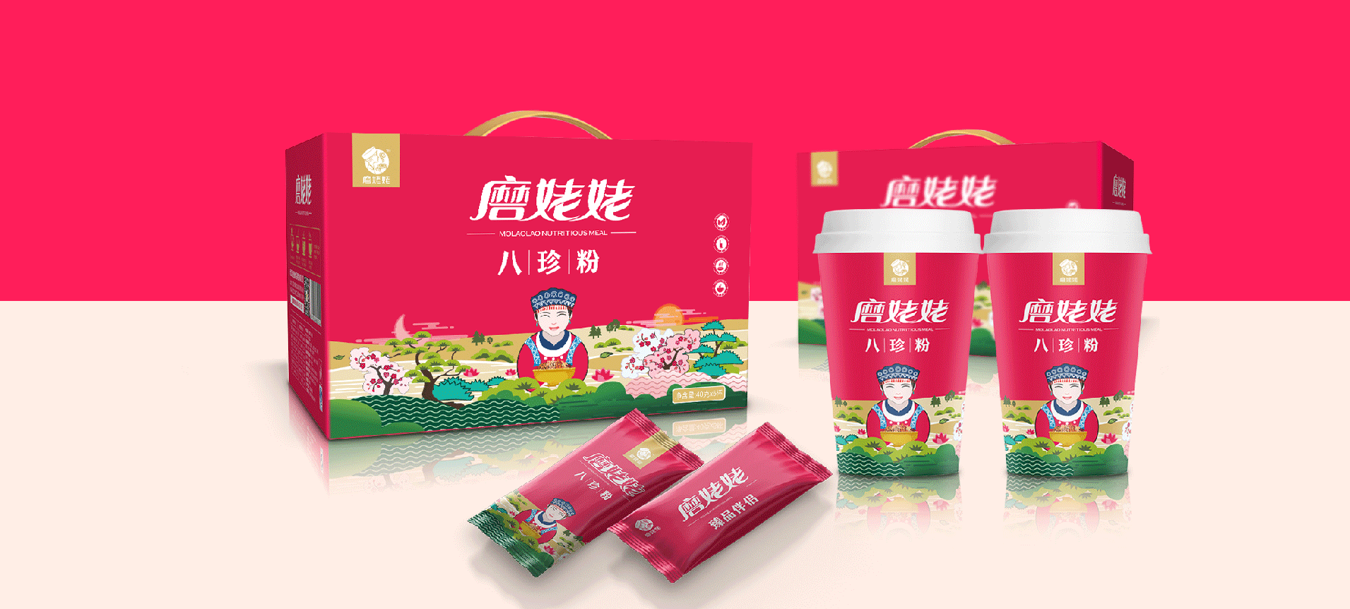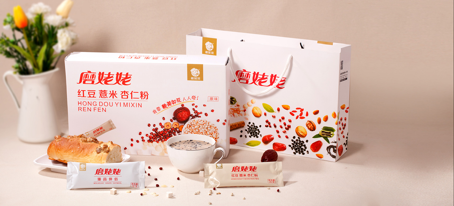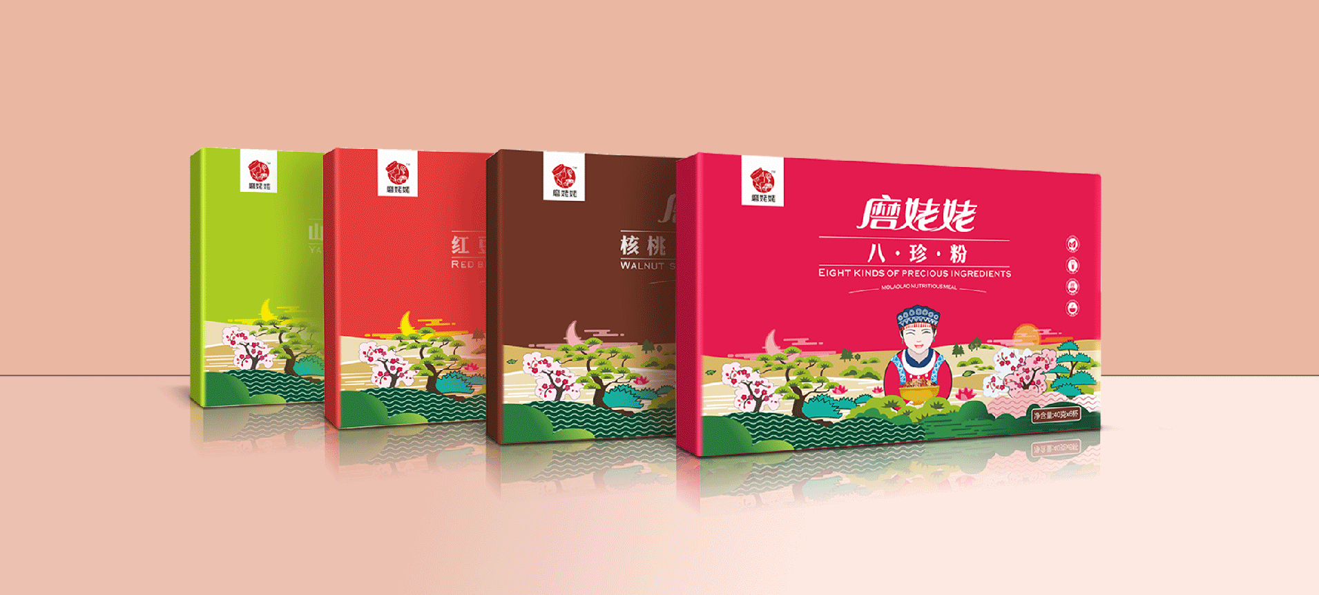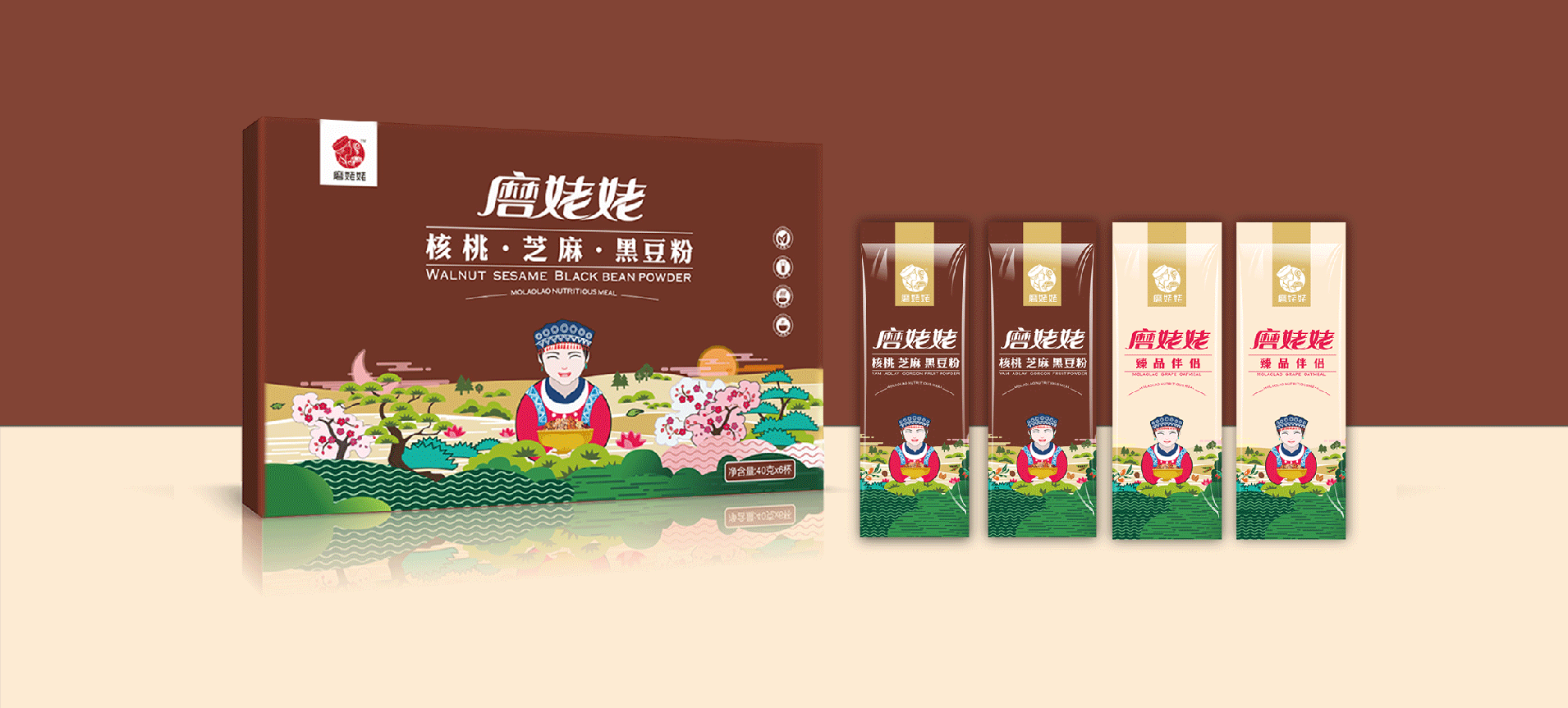 武漢金湘緣食品商貿(mào)有限公司主營(yíng)五谷雜糧粉,創(chuàng)立品牌“磨姥姥”,根據(jù)傳統(tǒng)食補(bǔ)養(yǎng)生文化,推出一系列五谷雜糧的養(yǎng)生食品。公司在全國(guó)各大商場(chǎng)均設(shè)有專柜,現(xiàn)場(chǎng)磨制,有深厚的市場(chǎng)認(rèn)知。我們與金湘緣攜手,為磨姥姥聽(tīng)過(guò)品牌包裝策劃設(shè)計(jì),幫助“磨姥姥”提升品牌形象,提高產(chǎn)品銷量,從而為更多的人帶來(lái)健康。